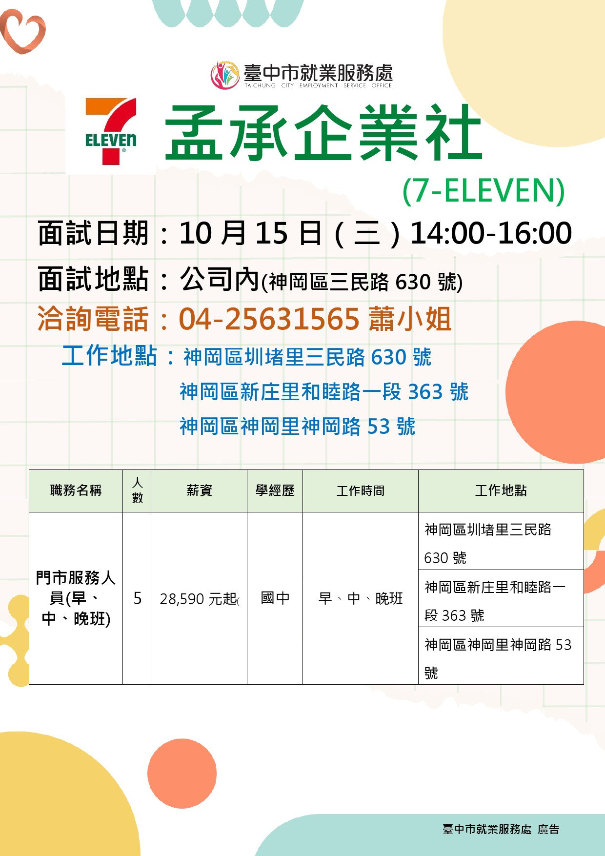 10/15(三)孟承企業社(7-11)單一徵才活動