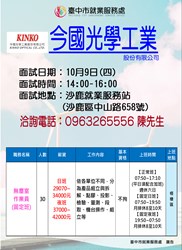 10/09(四)今國光學工業股份有限公司單一廠商徵才活動