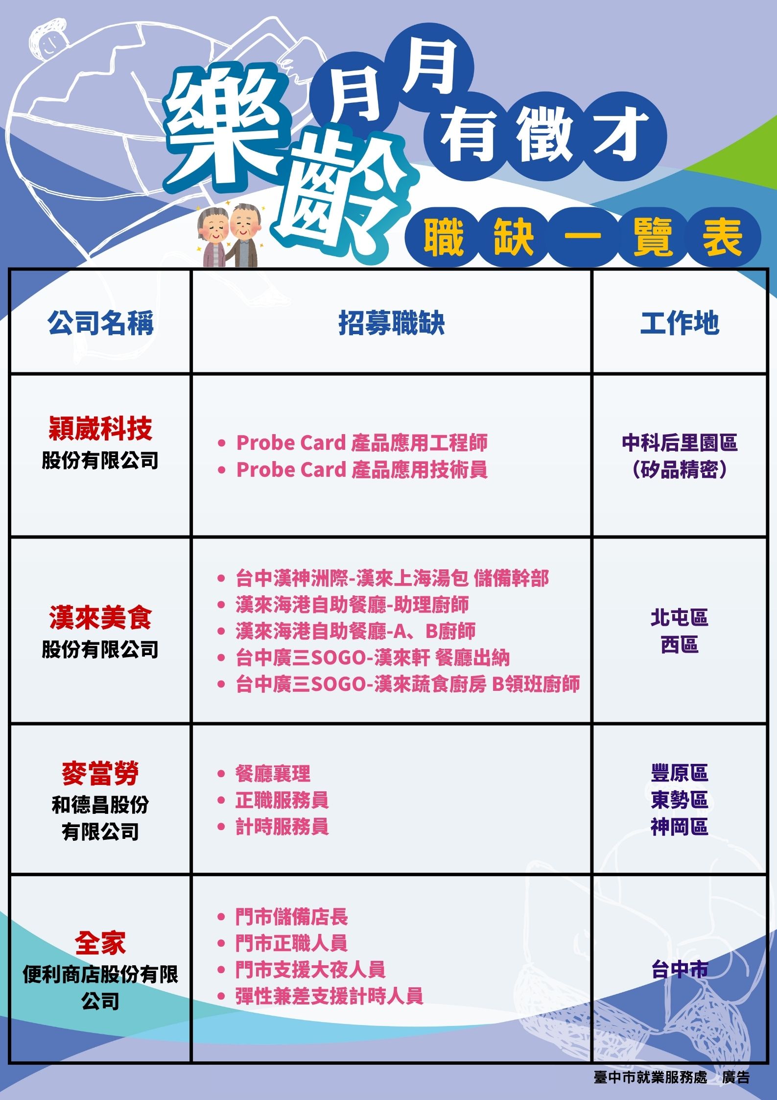 2025「富市台中 就業成功」樂齡就業月月有徵才