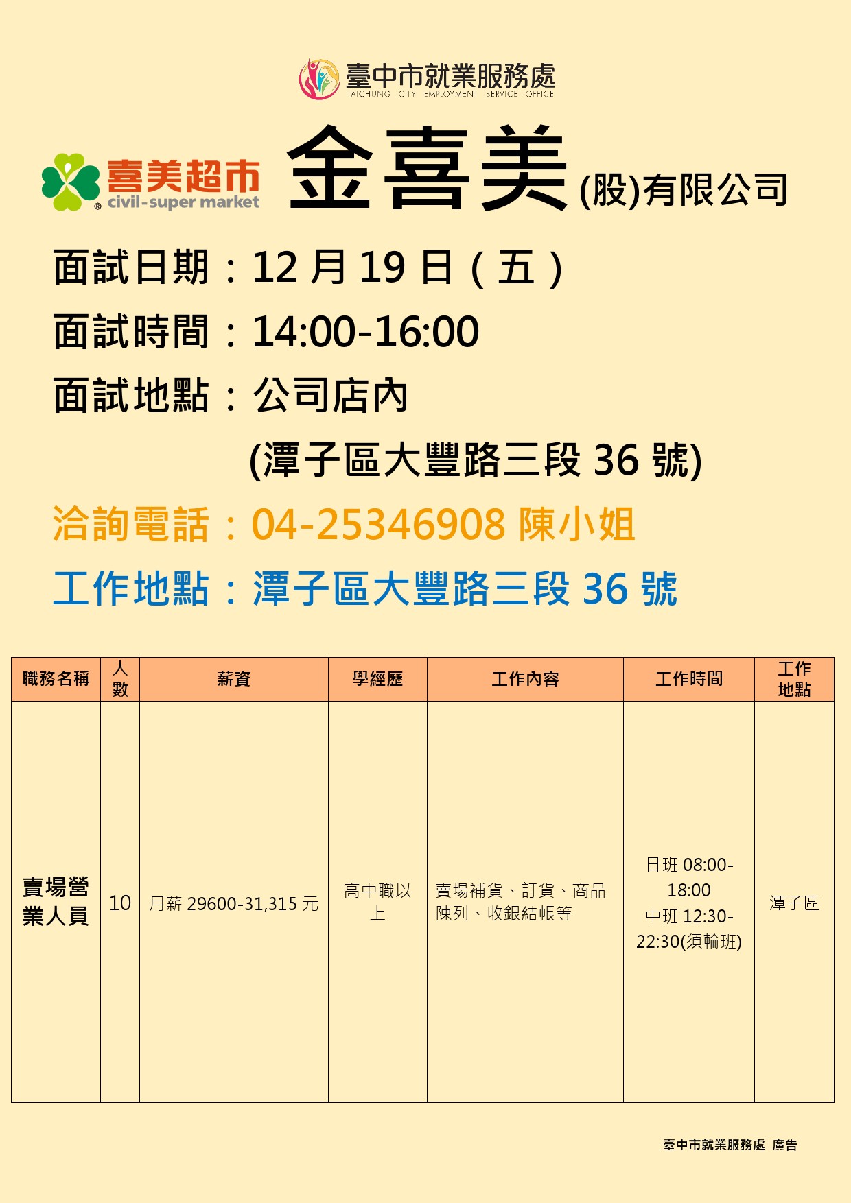 🔎職缺一:賣場營業人員(月薪制/10名)