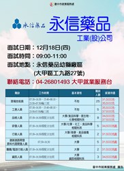 工作內容:錠針劑類品、保健品、原料藥生產、分包裝作業。
