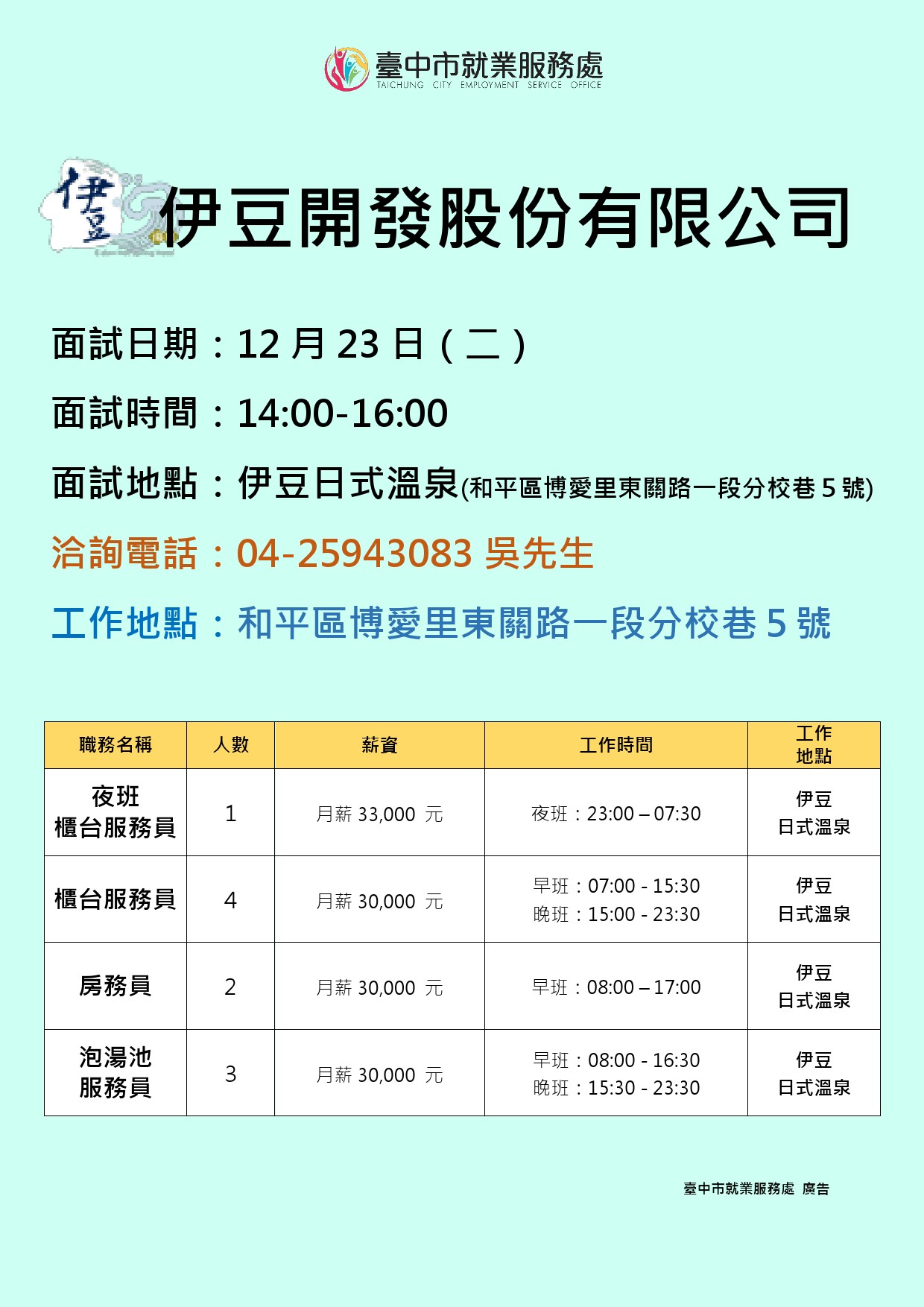 12/23(一)伊豆開發股份有限公司單一徵才活動