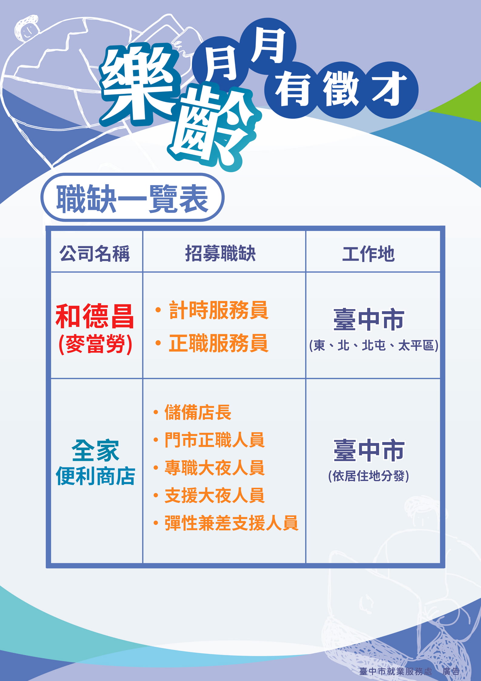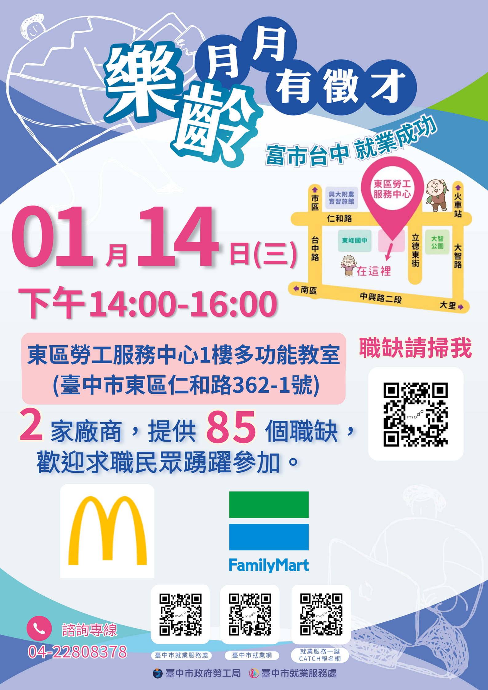 1/14(三)臺中市政府2026「富市台中 就業成功」樂齡就業月月有徵才