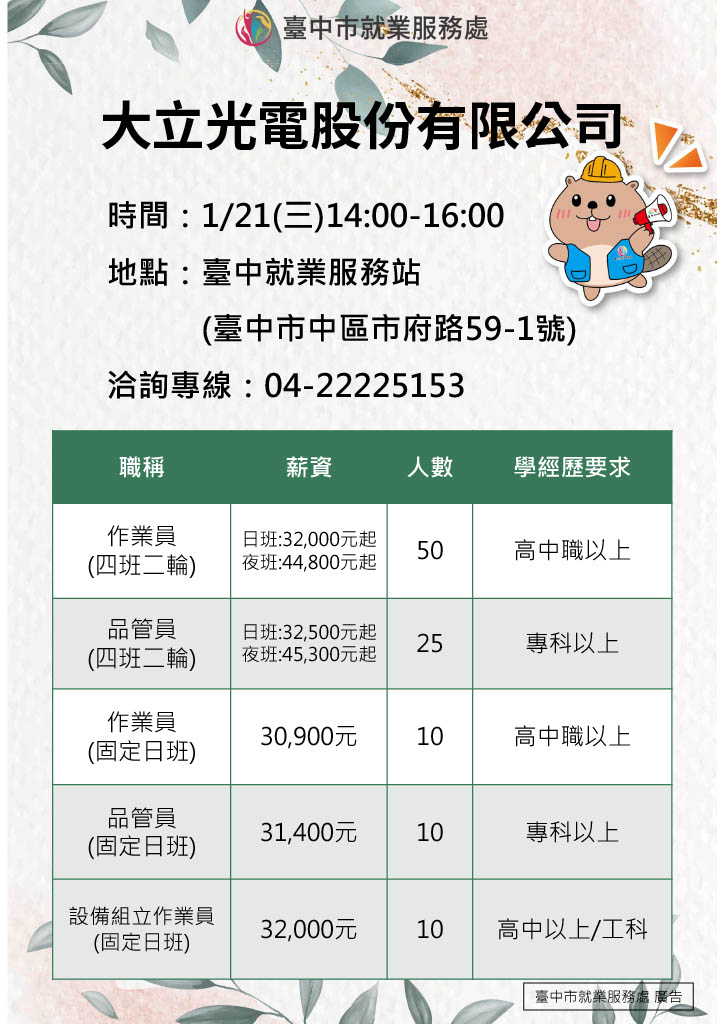 活動地點:臺中就業服務站