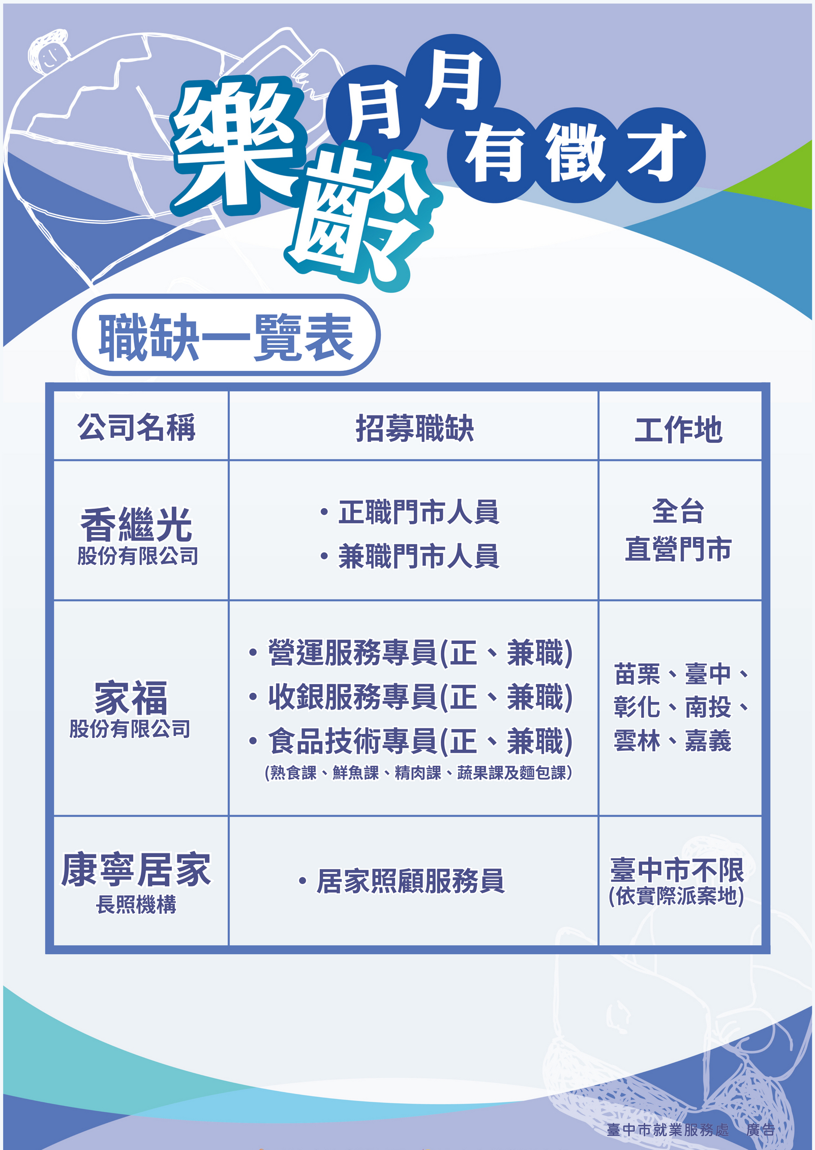 洽詢電話:(04)2280-8378 臺中市銀髮人才服務據點