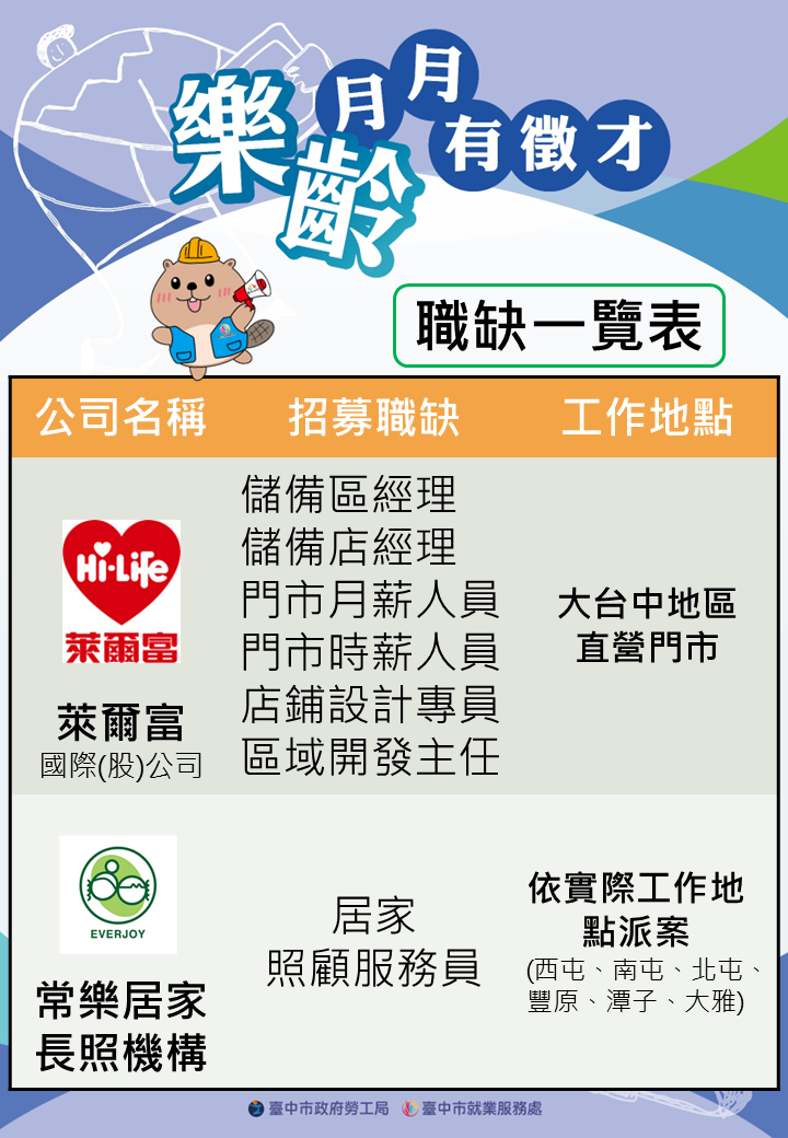 03/18(三)臺中市政府2026「富市台中 就業成功」樂齡就業月月有徵才