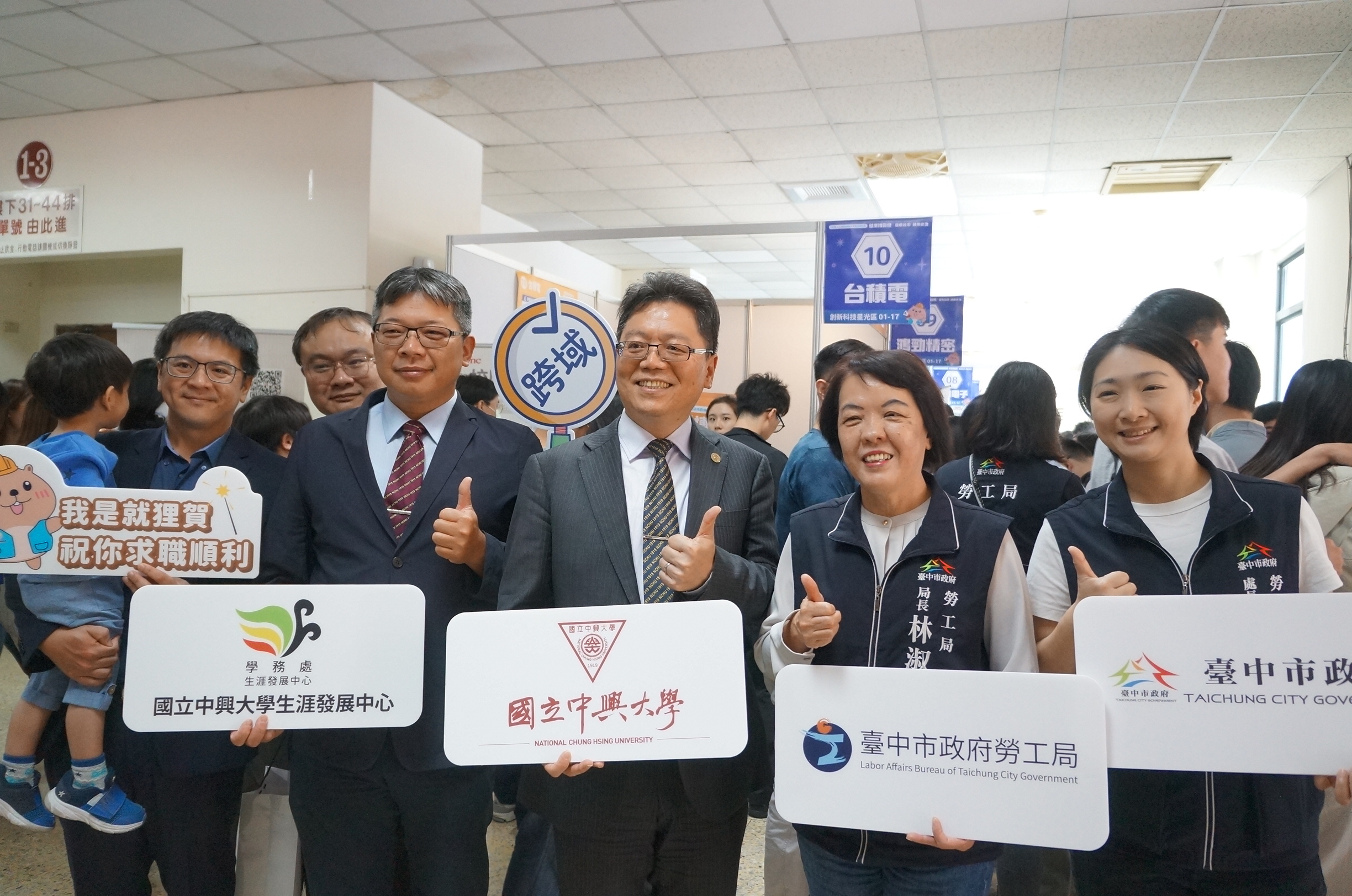 勞動部勞動力發展署中彰投分署分署長劉秀貞指出,台中市政府與中興大學合作舉辦就業博覽會,是產官學合作最佳典範,規模也十分盛大,一方面是企業對於這個活動的肯定,另一方面更是對中部地區人才的肯定,今天這麼多的就業機會,提供現場求職朋友非常多元優質的選擇。勞動部長期與地方政府及學界、企業與工會夥伴合作,順利推動許多就業政策,在青年就業部分大力推動投資青年就業方案,希望透過「定方向」、「爭好薪」協助青年朋友選擇優質工作機會,感謝地方夥伴的支持與協助。希望今天活動中所有求職朋友們都能找到心目中理想的工作並發揮所長,企業們也能夠找到優質的人才,達到勞資雙贏的目標。