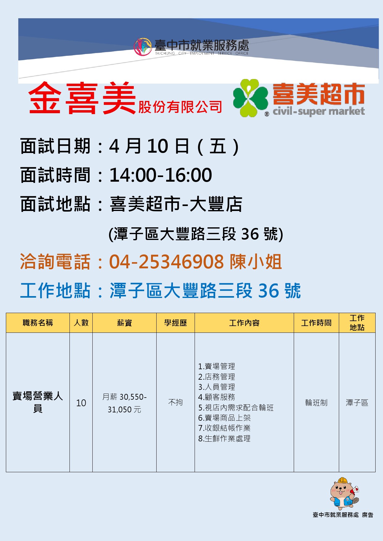 聯絡人:潭子就業服務台